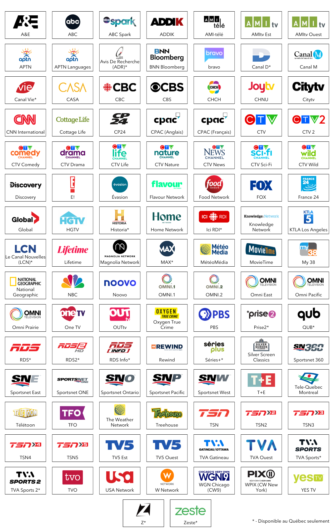 Regardez toutes vos chaînes préférées, chez vous et en déplacement avec Comwave! Des émissions d’actualités et de sports à la télé-réalité, en passant par les chaînes spécialisées de divertissement, les films et les documentaires, le forfait Télé pour les accros comprend tous vos favoris et presque toutes les chaînes, y compris le contenu que vous ne trouverez pas sur Netflix! Le forfait Télé pour les accros comprend les chaînes Addik, Ici Télé Montreal, LCN, MAX, Noovo, RDS, RDS Info, SériesPlus, Télétoon, TVA Montreal, TVA Sports, Z, ABC, Bravo, CBC, Citytv, CNN, Family Channel, Flavour Network, E!, et bien d’autres encore. Pour consulter la liste complète des chaînes, cliquez ici.